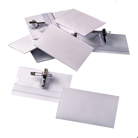 Jmenovky Combi clip 10 ks, rozměr 54 x 90 mm, kombinovaný úchyt na šaty s klipem a špendlíkem