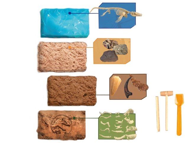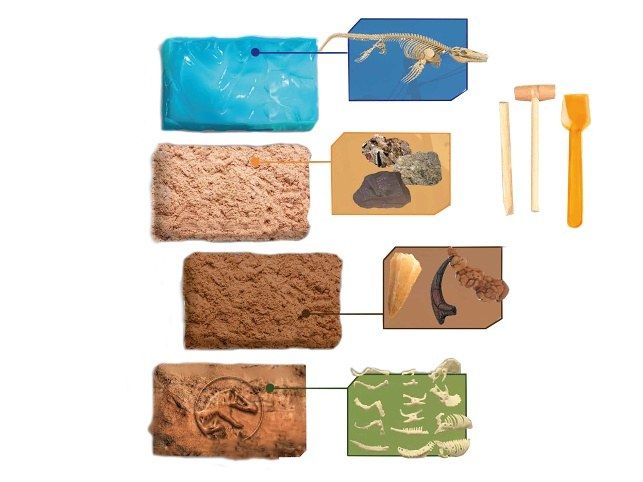 Dinosauři patří mezi velmi oblíbené postavičky. S touto sadou se vaše dítě přenese do dávné doby, kde žila prehistorická zvířata. Staň se paleontologem a vytesej si dinosauří pozůstatky ze čtyř různých druhů zkamenělin. Vhodné pro děti od 6 let.