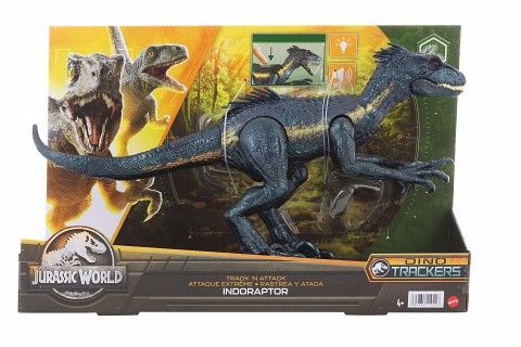 Figurka Jurský svět Útočící indoraptor se zvuky odráží jeho zlověstnou pověst s obrovskými drápy a motivem z džungle s kovovými doplňky pro duhový efekt. Jeho 3 útočné funkce zahrnují svítící červené oči, žravou akci a útok lomozem a řevem. Všechny akce jsou spojeny se zvukovými efekty. Je dodáván s odnímatelným postrojem pro sledování a má klouby pro realistické pózování nebo hraní. Barvy a provedení se mohou lišit.Věk 4+