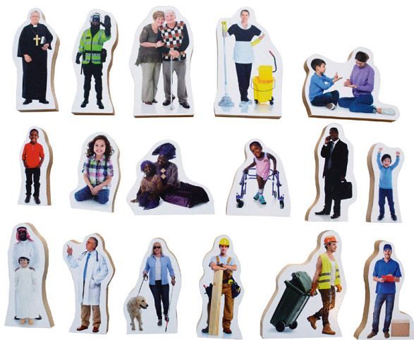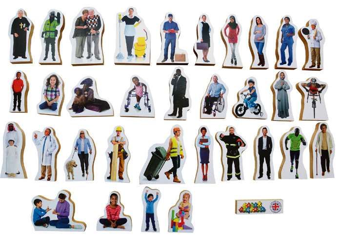 Just Jigsaws 831 Lidé kolem nás - dřevěné postavy 33 dílů je sada 33 reálně vyobrazených, volně stojících postav představující lidskou populaci. Sada nabízí široké spektrum, zahrnující různé věkové kategorie a pohlaví, hendikepované jedince, zástupce různých národností, kteří odrážejí naši bohatou kulturu a v neposlední řadě představuje i různé profese. Tato sada je krásnou edukativní pomůckou a najde různé způsoby využití. Reálné fotky těchto lidí z běžného života pomáhají dětem lépe identifikovat určité postavy a snáze si je pak zapamatovat. Výška dřevěných figurek se pohybuje mezi 7,5 cm a 10,5 cm a jsou vyrobeny z MDF desky o tloušťce 1,5 cm.