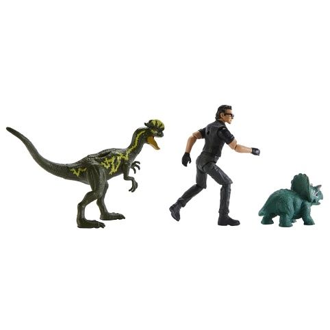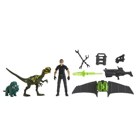 Tento původní nostalgický set Jurský svět Ian Malcolm s dinosaury a doplňky obsahuje polohovatelnou figurku Iana Malcolma s odnímatelným taktickým kluzákem InGen s 22 cm širokými křídly. Dilophosaurus má DNA tag pro rozšířené digitální hraní a je dodáván