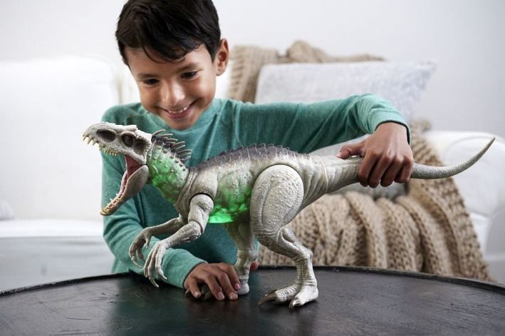 Připravte se na velké vzrušení a dobrodružství s Jurským světem! Indominus Rex se světly a zvuky je špičkový hybridní druh, známý padouch z filmové série, a na scéně se představuje jako dinosaurus s maskovacím osvětlením. Pohyby krku ze strany na stranu s