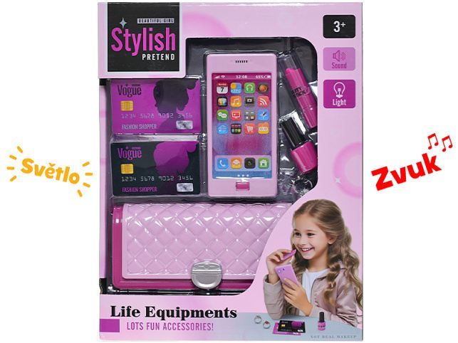 Kabelka 18,5x8cm s telefonem na baterie se světlem a zvukem a doplňky v krabičce