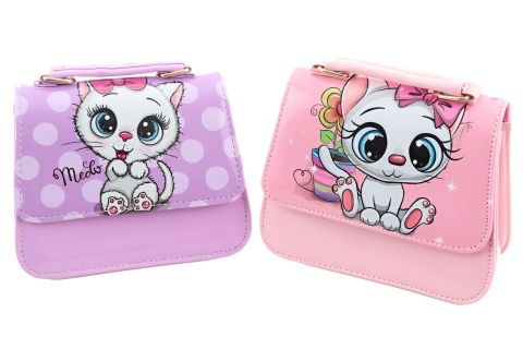Barevná kabelka s motivem kočičky. Uvnitř 1 velká přihrádka. Rozměry 16x15x6 cm. Baleno v sáčku. 2 druhy - dodáváme dle skladové dostupnosti. Věk 3+