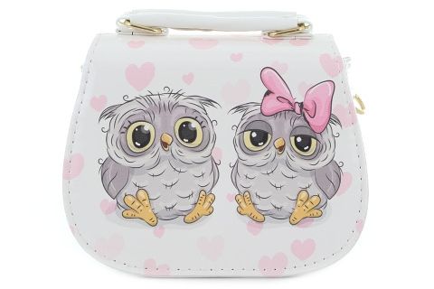 Bílá kabelka s motivem soviček. Rozměry kabelky cca 16,5 x 15 x 7 cm. Věk 3+