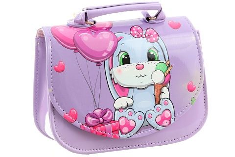 Kabelka s motivem králíčka se srdíčky. Lesklý materiál. Jedna kapsa, zapínání na druk. Rozměry kabelky 18x14x7 cm. Výrobek není hračka.