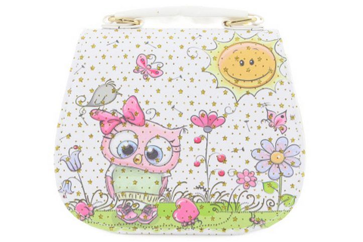 Bílá kabelka se sovičkou. Rozměry kabelky cca 17 x 15 x 7,5 cm. Věk 3+