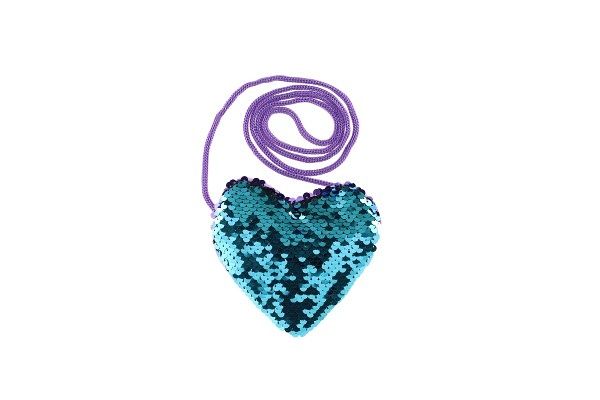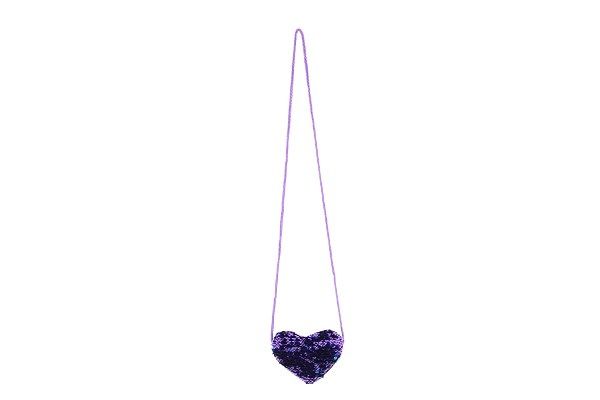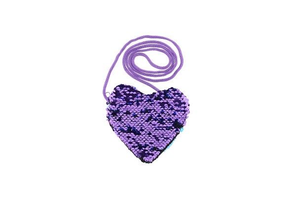 Kabelka srdce s flitry měnícími látková fialové 12x11cm v sáčku