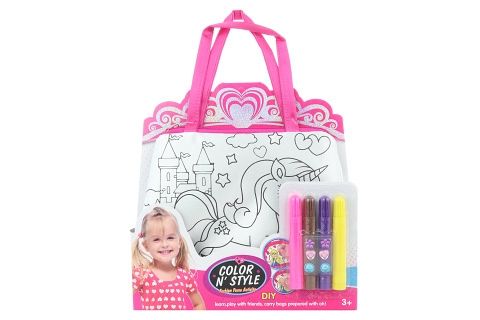 Vybarvovací kabelka obsahuje 4 speciální fixy určené pro vybarvování textilu a ozdobné kamínky. Velikost kabelky cca 21 x 17 cm. Rozměry balení cca 23 x 23 x 3 cm. Věk 3+
