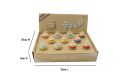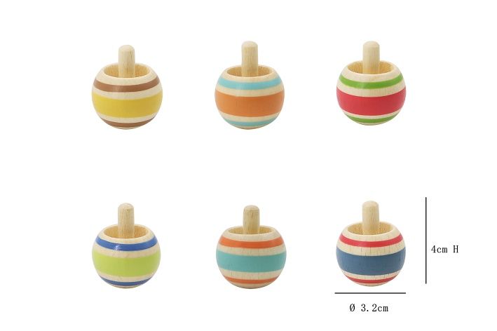 Káča dřevěná. Rozměry 5,5x5,5x3,1 cm. 36 ks display box. 6 variant - oranžová, žlutá, červená, zelená, světle modrá, tmavě modrá.