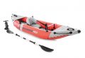 Kajak Excursion PRO K1 pro 1 osoba, součástí balení je jedno pádlo. Rozměr kajaku je 3,05 m x 91 cm x 46 cm. Maximální váhový limit je 100 kg. 2 odnímatelné držáky rybářských prutů, 2 uchopovací rukojeti na obou koncích, nastavitelný sedák s opěrkou zad, odjímatelný, držák na GOPRO kameru nebo telefon, nastavitelné opěrky na nohy. součástí balení je také pumpa.