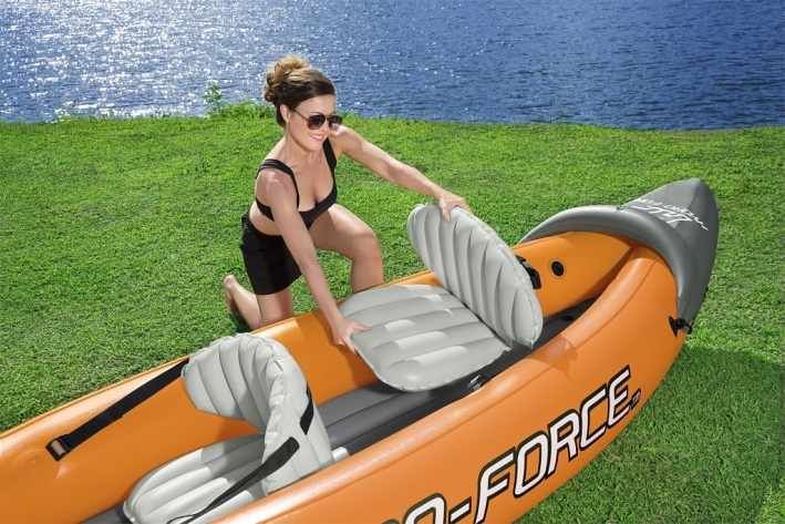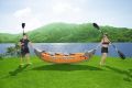 Nafukovací kajak Bestway je vyrobený z pevného předem testovaného vinylu, pro 2 osoby. Nejen, že je nafukovací, což usnadňuje zabalení a přepravu, má také tvarově tvarovanou konstrukci, která zabraňuje vniknutí vody do kokpitu. Šroubové ventily pro rychlé nafouknutí/vyfouknutí. Uchopovací lano se zabudovanými průchodkami. Pohodlný kokpit s nafukovacími sedadly. Jedna odnímatelná střední ploutev pro směrovou stabilitu. Integrovaný vypouštěcí ventil. Držadla na přenášení. Obsahuje dvě 2,18m (86"") hliníkové vesla. Včetně záplaty na opravu.
