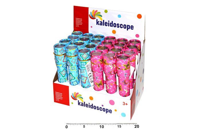 Kaleidoskop. Délka 20 cm. Display box 24 ks. 2 varianty - modrá, růžová.