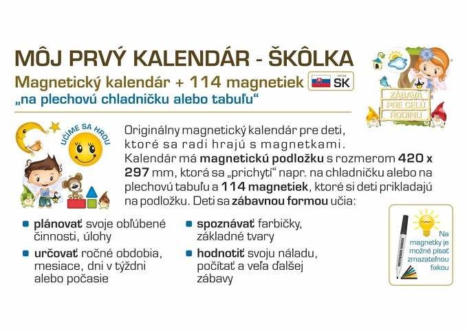 Kalendár magnetický - Škôlka 114ks magnetiek v kartóne 45x32x1cm SLOVENSKÁ VRZE