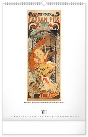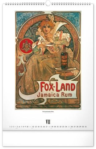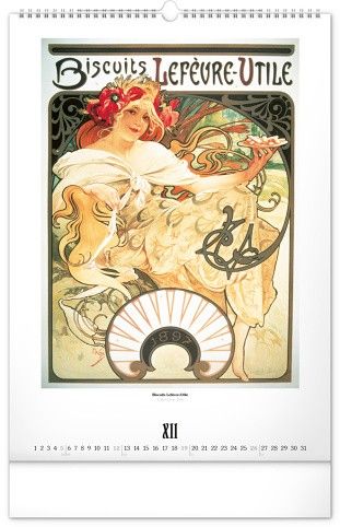 Nástěnný kalendář ve velkém formátu s reprodukcemi obrazů oblíbeného secesního malíře českého původu. Reprodukce doplňuje vkusné univerzální kalendárium s vyznačenými nedělemi a popisky děl ve čtyřech jazycích (CZ, FR, EN, DE).