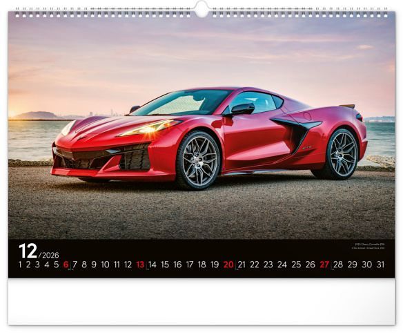 Nástěnný kalendář pro všechny milovníky rychlé jízdy a sportovních vozů. Dvanáct snímků luxusních sportovních vozů z celého světa na stránkách kalendáře v šířkovém formátu. Fotografie jsou doplněny univerzálním kalendáriem na černém pozadí.