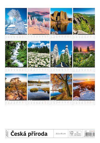 Kalendář nástěnný Česká příroda NEW 2027, 31,5cm x 45cm, N107-27