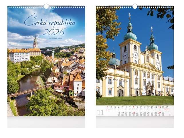 Nástěnný kalendář na rok 2026 s názvem Česká republika. Kochejte se fotkami krásných míst z celé České republiky a inspirujte se, kam na dovolenou. Vhodný k organizování různých událostí každodenního života. Možnost dotisku firemního loga a textu na spodní stranu kalendáře.