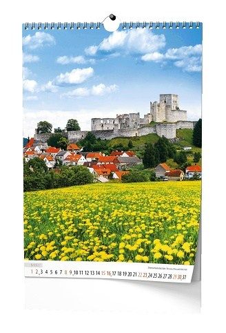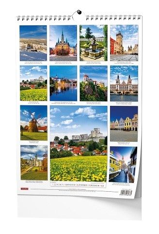 Nástěnný kalendář s obrázky známých míst v České republice.