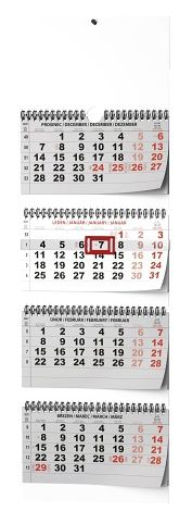 Praktický skládací nástěnný kalendář se čtyřměsíčním kalendáriem a posuvným jezdcem vhodný do Vaší kanceláře.