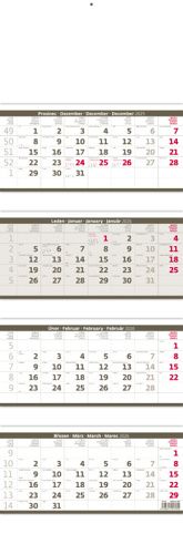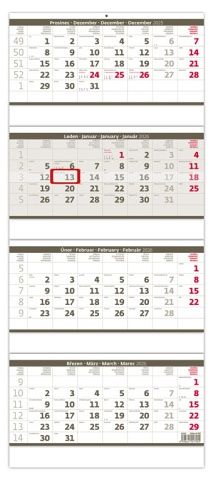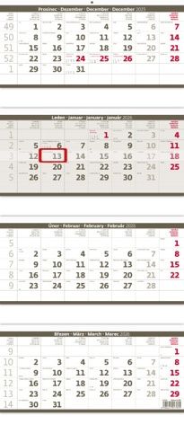 Čtyřměsíční skládaný kalendář šedý 2026 Vyrobeno v ČR