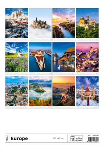Kalendář nástěnný Europe 2026 / 52cm x 31,5cm / N123-26