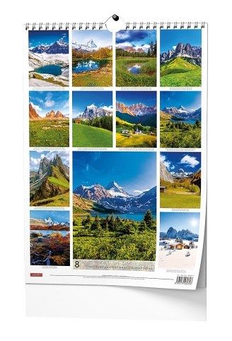 Nástěnný kalendář s obrázky známých hor z celého světa.