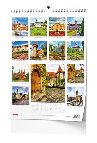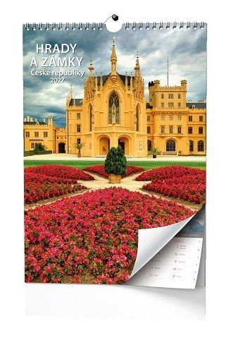 Nástěnný kalendář s obrázky hradů a zámků naší země.