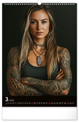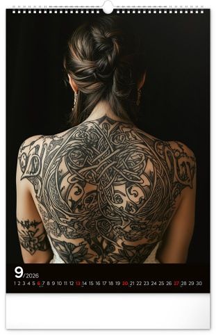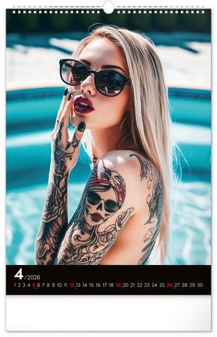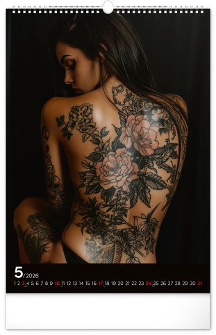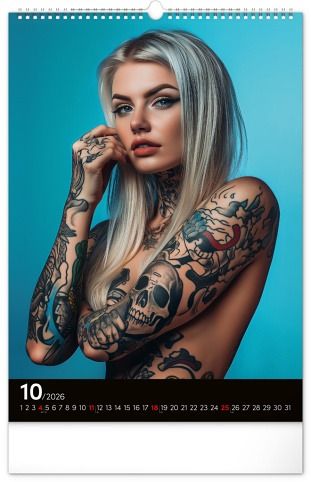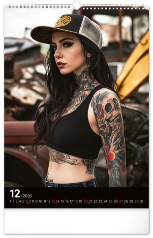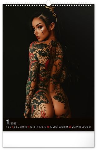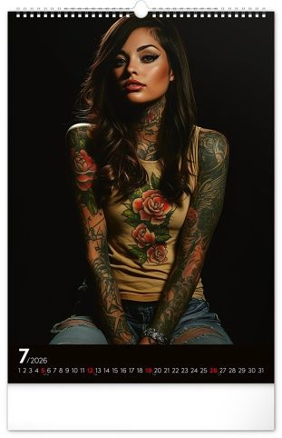 Rok plný charismatických žen a působivých tetování. Kalendář nabízí dvanáct fotografií modelek, které spojuje krása, styl a tělo proměněné v umělecké dílo. Nechybí jednoduché kalendárium se zvýrazněnými nedělemi na černém pozadí.