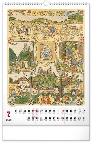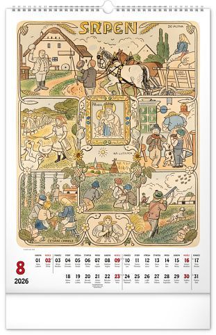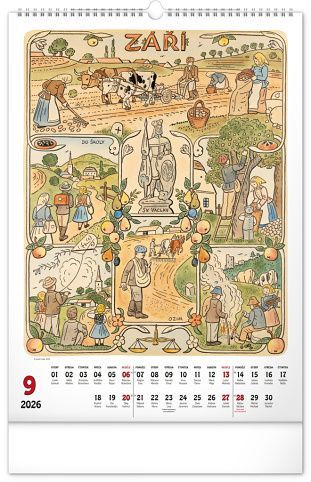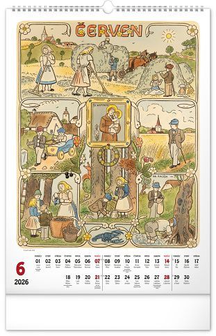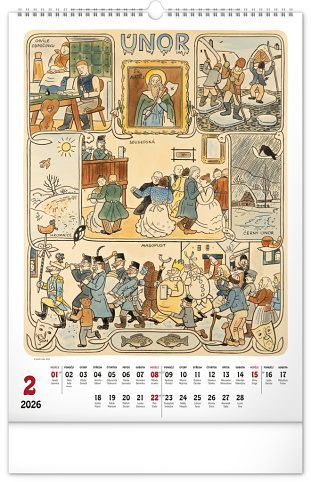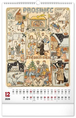 Nástěnný kalendář s ilustracemi Josefa Lady a pohádkovými motivy je vyhotoven v oblíbeném velkém formátu, který osvěží každý interiér. V kalendáři je rovnocenně zahrnuta čeština a slovenština, ilustrace doplňuje kalendárium s českými a slovenskými jmeninami, svátky, památnými dny a měsíčními fázemi. Pro každý den je prostor na poznámky, víkend je barevně odlišen od pracovních dní.