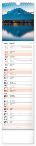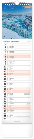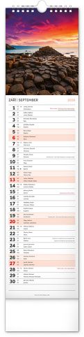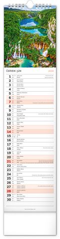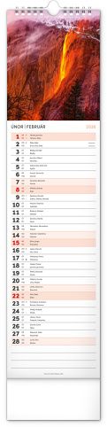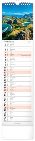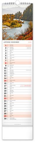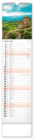 Udělejte si radost pohledem na fotografie malebné krajiny v praktickém úzkém formátu česko-slovenského nástěnného kalendáře. Kalendář obsahuje česká a slovenská jména, svátky, památné dny i měsíční fáze. V každém jednotlivém dni je prostor pro poznámky.