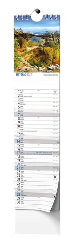Netradiční nástěnný kalendář ve formátu kravaty s působivými obrázky České republiky.