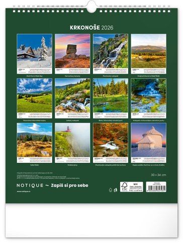 Kalendář nástěnný Krkonoše 2026, 30 x 34 cm / PGN-35748-L