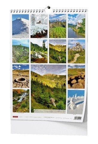 Nástěnný kalendář s obrázky Krkonoš.