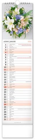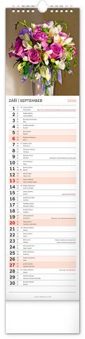 Kalendář nástěnný Květiny – Kvety 2026, 12 x 48 cm / PGN-35755-L