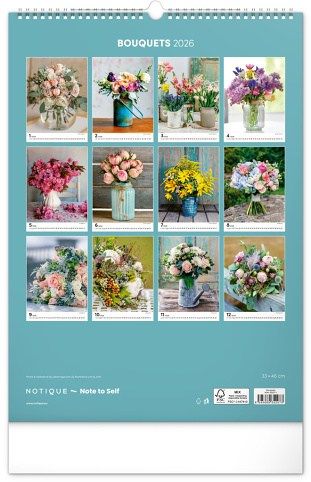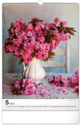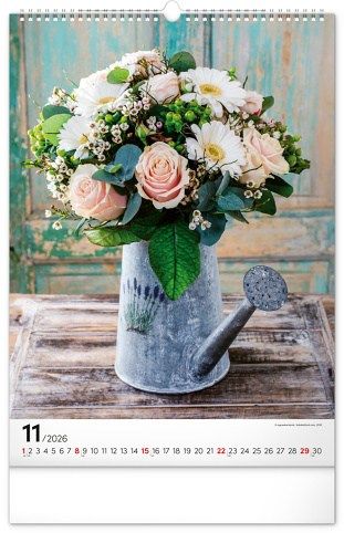 Originálně naaranžované kytice z čerstvých živých květů v nástěnném kalendáři s univerzálním kalendáriem. Potěšte se pohledem na fotografie pestrých a nikdy nevadnoucích květů bez ohledu na roční dobu.