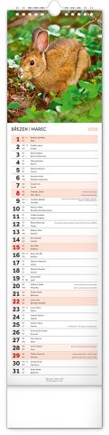 Kalendář nástěnný Lesní zvěř – Lesná zver 2026, 12 x 48 cm / PGN-35759-L