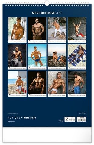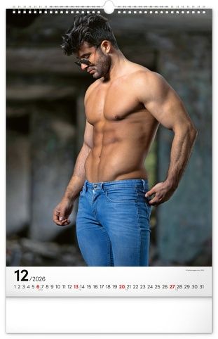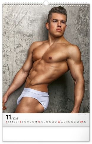 Kalendář přináší dvanáct fotografií pohledných mužů, kteří zaujmou nejen svým vzhledem, ale i charismatem. Elegantní provedení doplňuje jednoduché kalendárium se zvýrazněnými nedělemi na bílém pozadí.