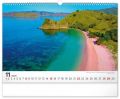 Průzračná tyrkysová hladina, azurové nebe s bílými mráčky, palmy, paprsky slunce, to je skutečný ráj na zemi. Dvanáct plážových momentek z Portugalska, Thajska i jiných světových destinací na efektním bílém pozadí s jednoduchým kalendáriem.