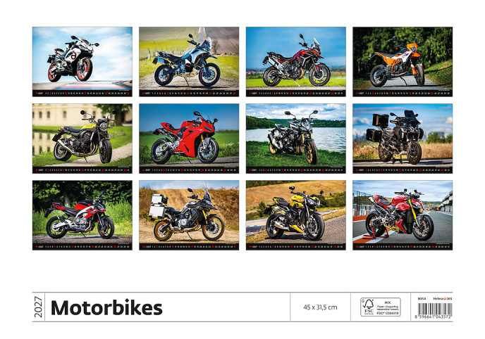 Kalendář nástěnný Motorbikes 2027, 45cm x 31,5cm, N154-27
