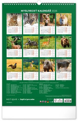 Kalendář nástěnný Myslivecký 2026, 33 x 46 cm / PGN-35735-L