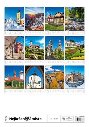 Kalendář nástěnný Nejkrásnější místa ČR 2027, 31,5cm x 45cm, N111-27