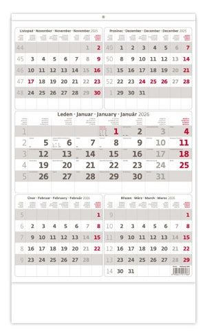 Kalendář nástěnný Pětiměsíční šedý 2026 / 52cm x 31,5cm / N212-26