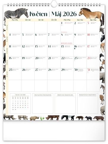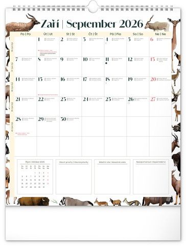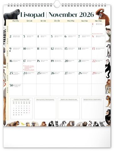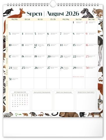 Kalendář nástěnný plánovací Animalium 2026, 30 x 34 cm / PGN-35774-L