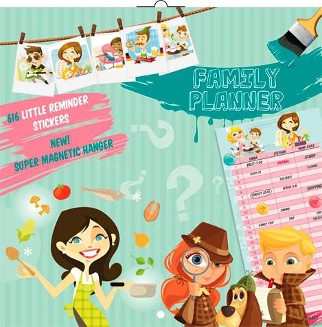 Kalendář se samolepkami, perem, papírovou kapsou a praktickou magnetickou lištou pro umístění na lednici...