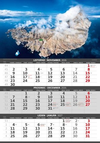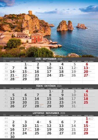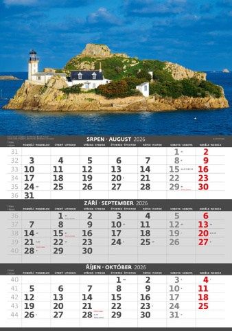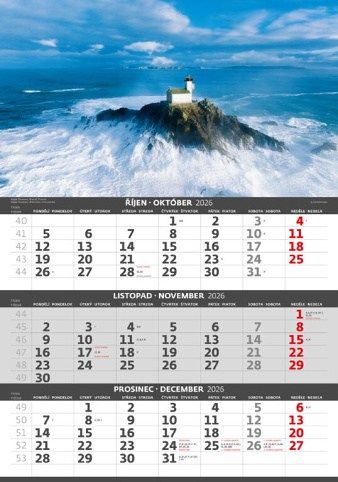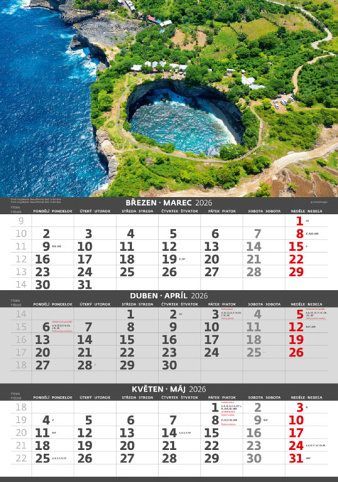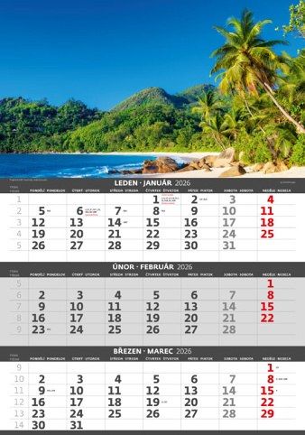 Tříměsíční kalendář Pobřeží 2026 Vyrobeno v ČR