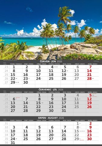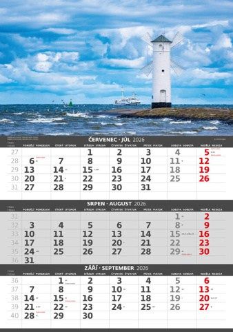 Kalendář nástěnný Pobřeží – 3měsíční/Pobrežie – 3mesačné 2026 / 52cm x 31,5cm / N202-26