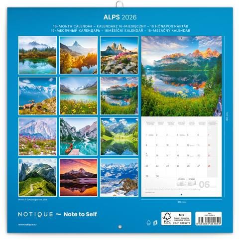 Kalendář nástěnný Poznámkový Alpy 2026, 30 x 30 cm / PGP-35164-V