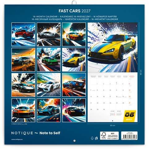 Kalendář nástěnný poznámkový Fantastická auta 2027, 30 x 30 cm / PGP-36356-V