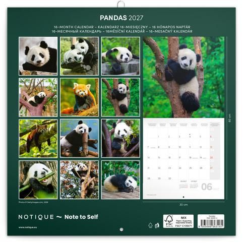 Kalendář nástěnný poznámkový Pandy 2027, 30 x 30 cm / PGP-36316-V